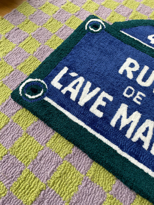 Une mini collection de tapisseries murales aux formes des emblématiques plaques de rues parisiennes, toutes tuftées main dans mon atelier.