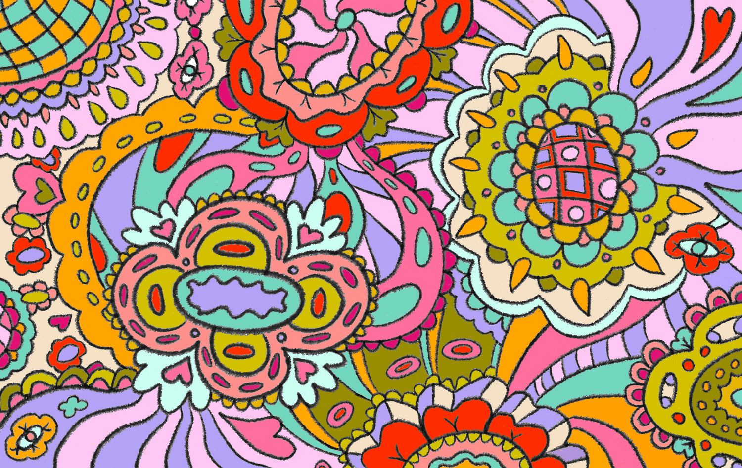 Très grande fleur 3D psychédélique à franges (tapisserie murale)