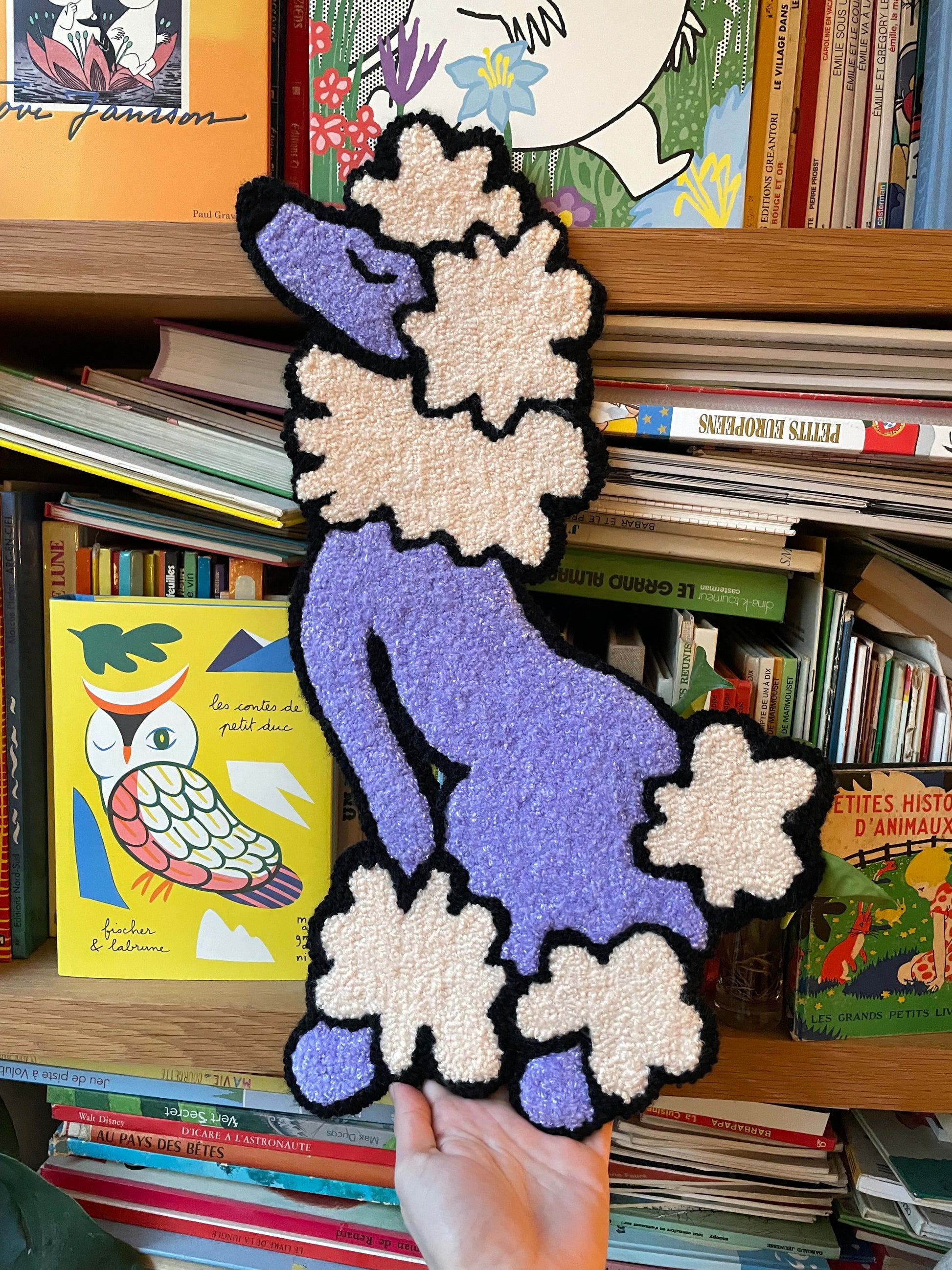 Cette création est une pièce unique entièrement réalisée par Joséphine Pelletier, en tufting, en poils bouclés.