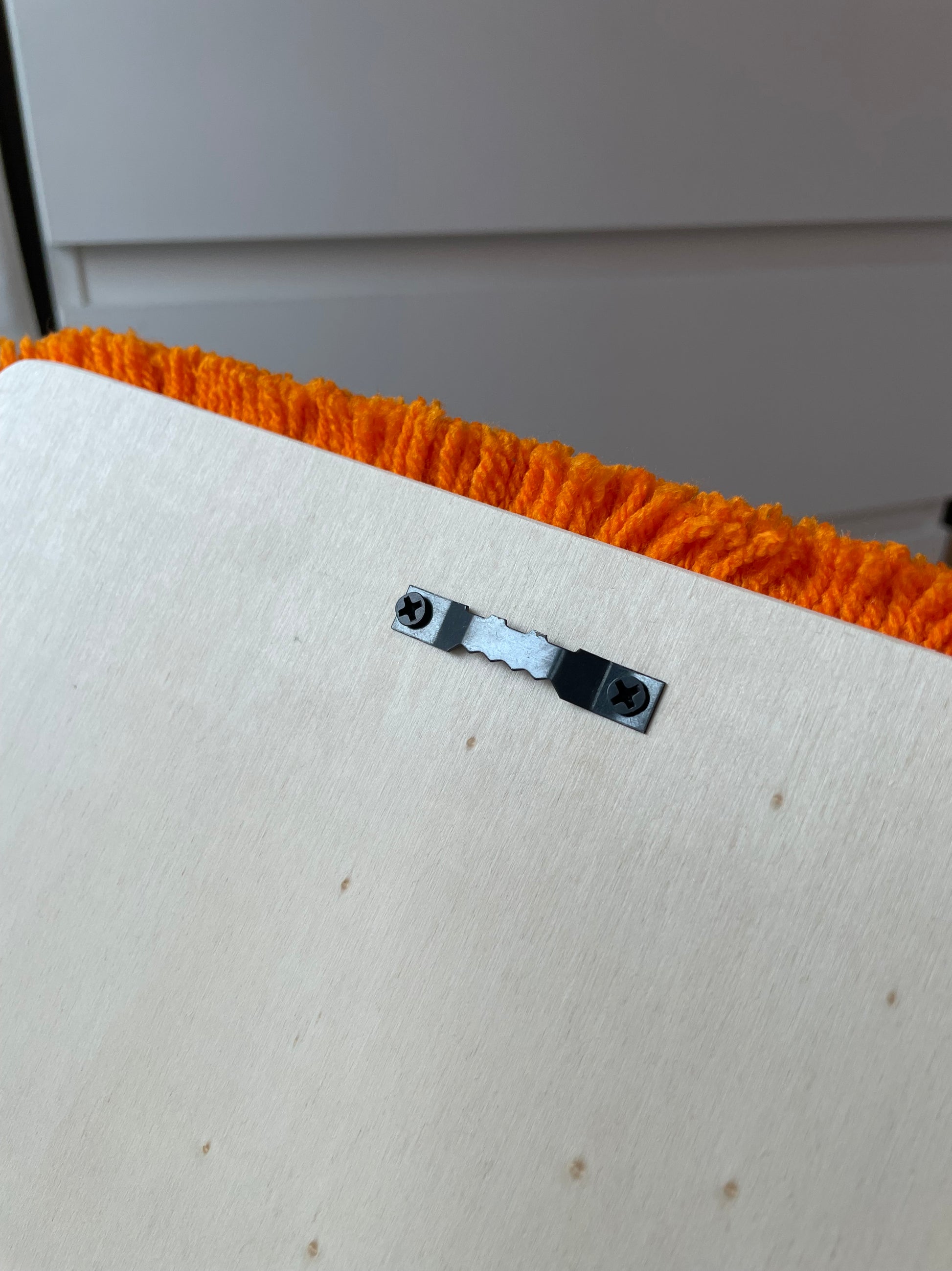 Laine acrylique, toile de tufting, colle, boie, attache.