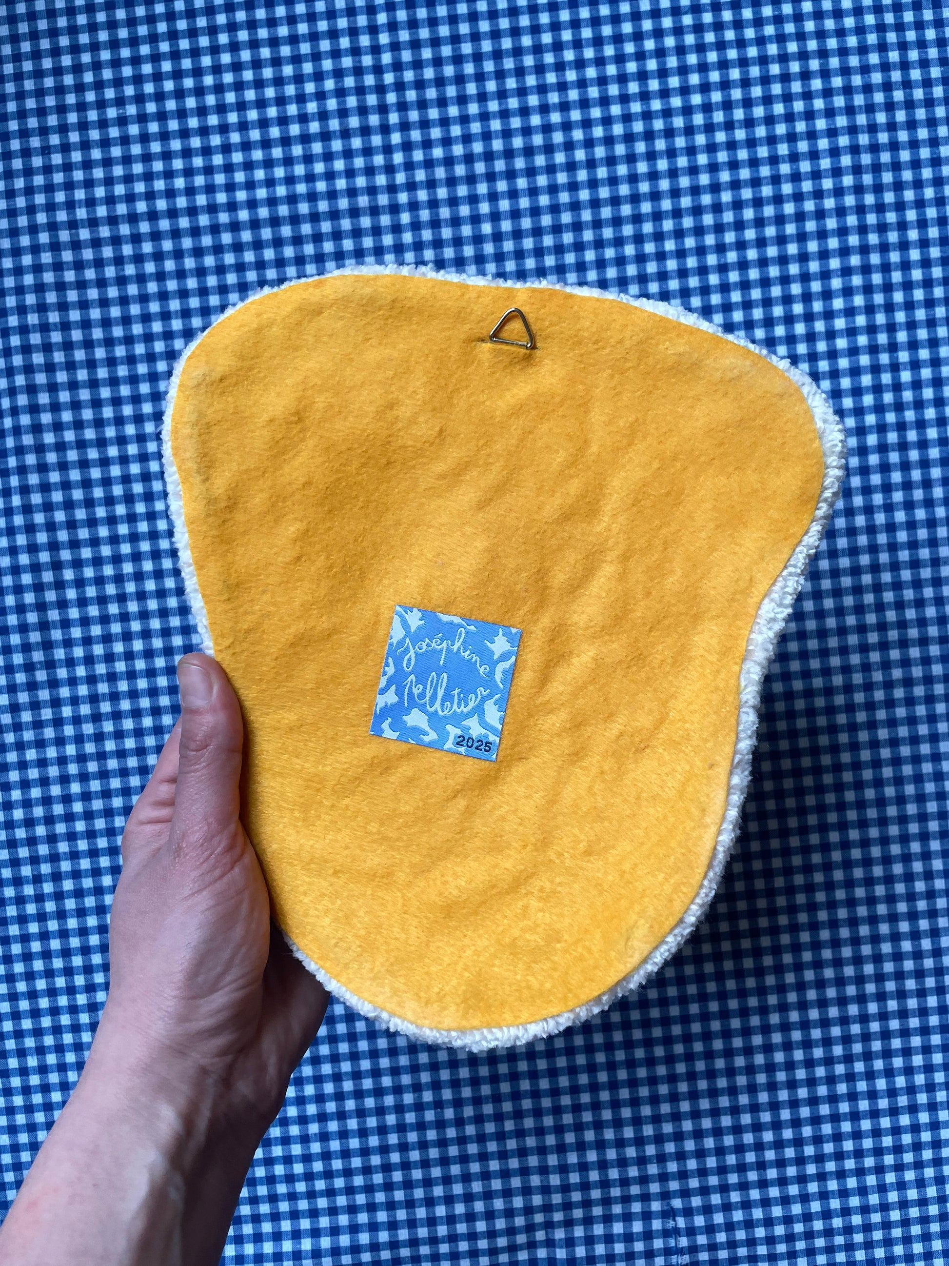Décoration murale en tufting, crochet de suspension dans le dos.