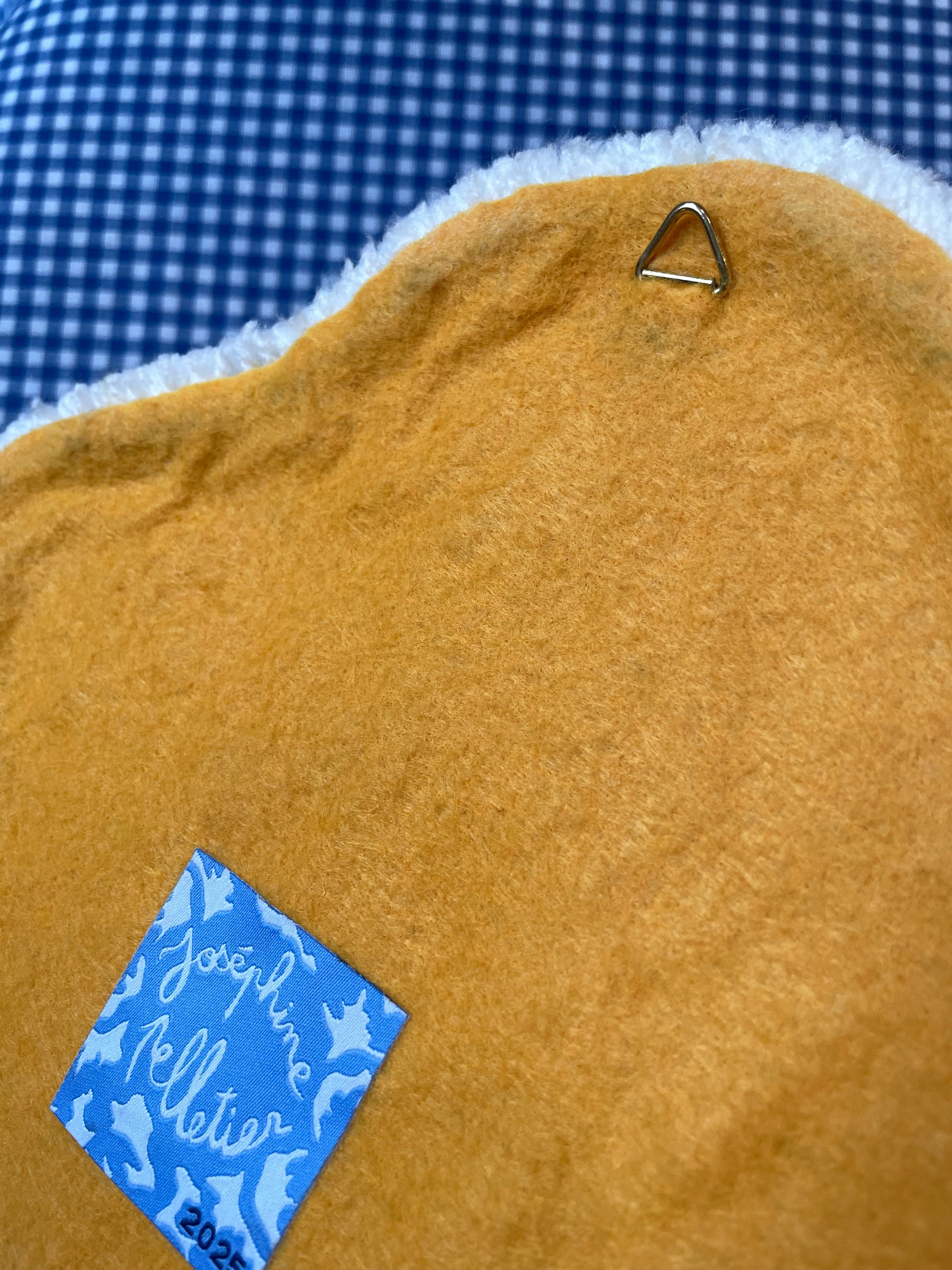 Décoration murale en tufting, crochet de suspension dans le dos.