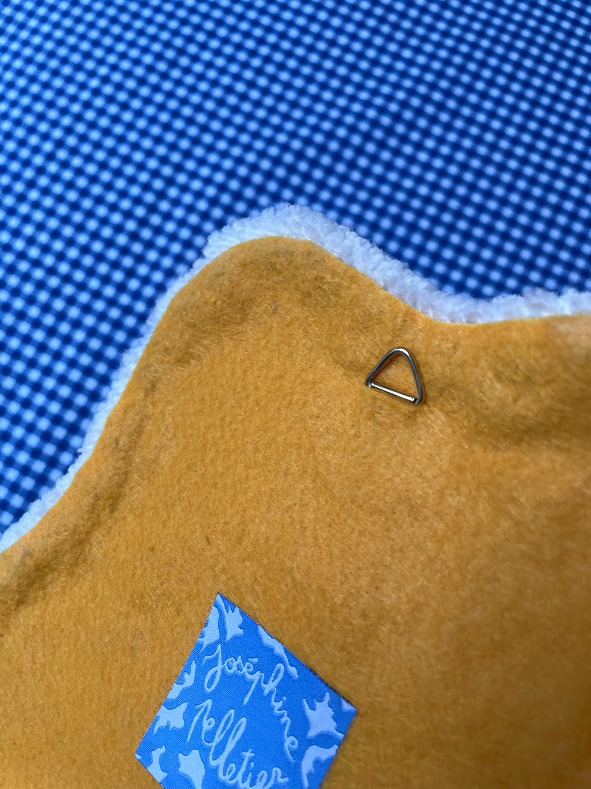 Décoration murale en tufting, crochet de suspension dans le dos.