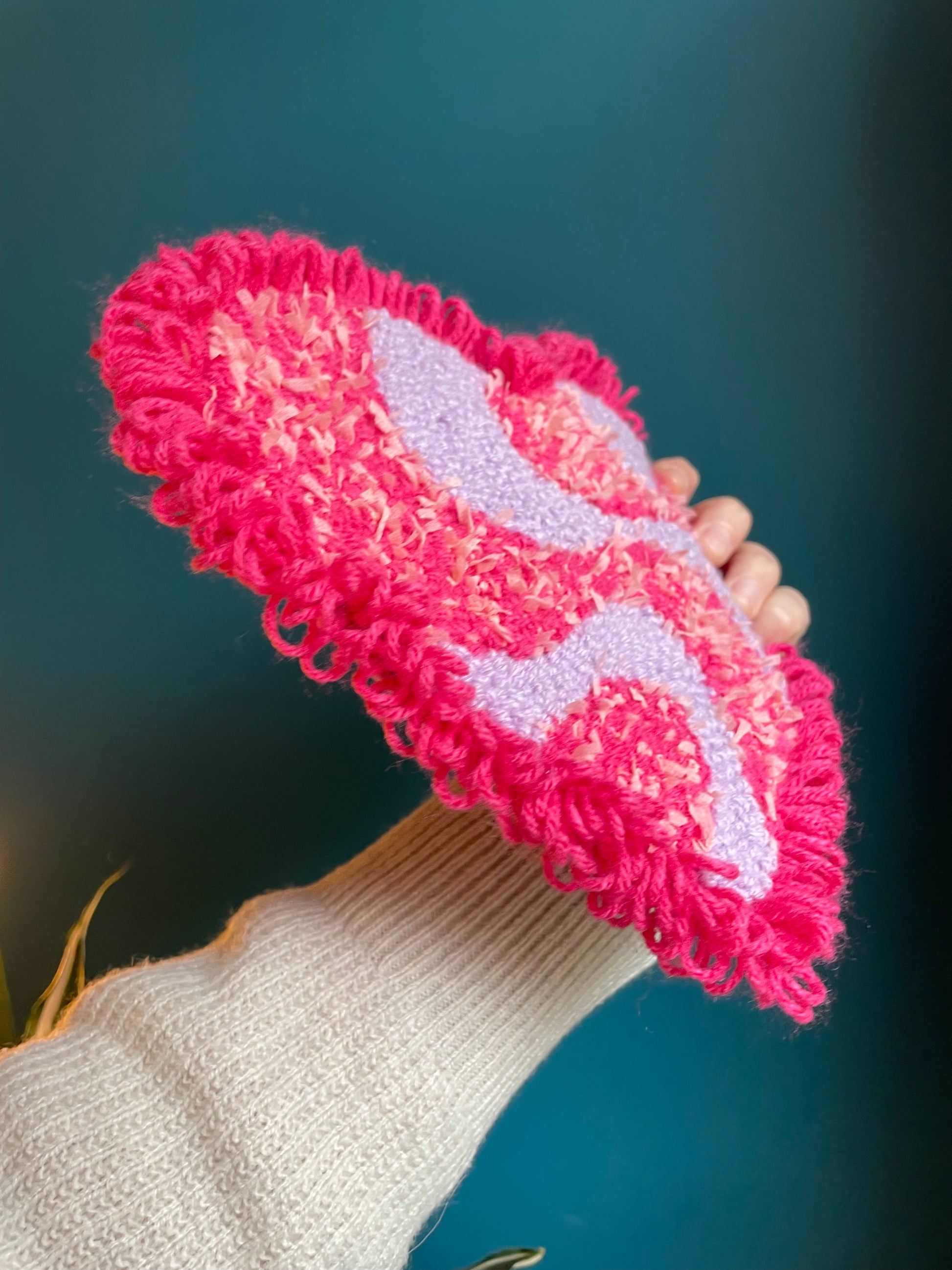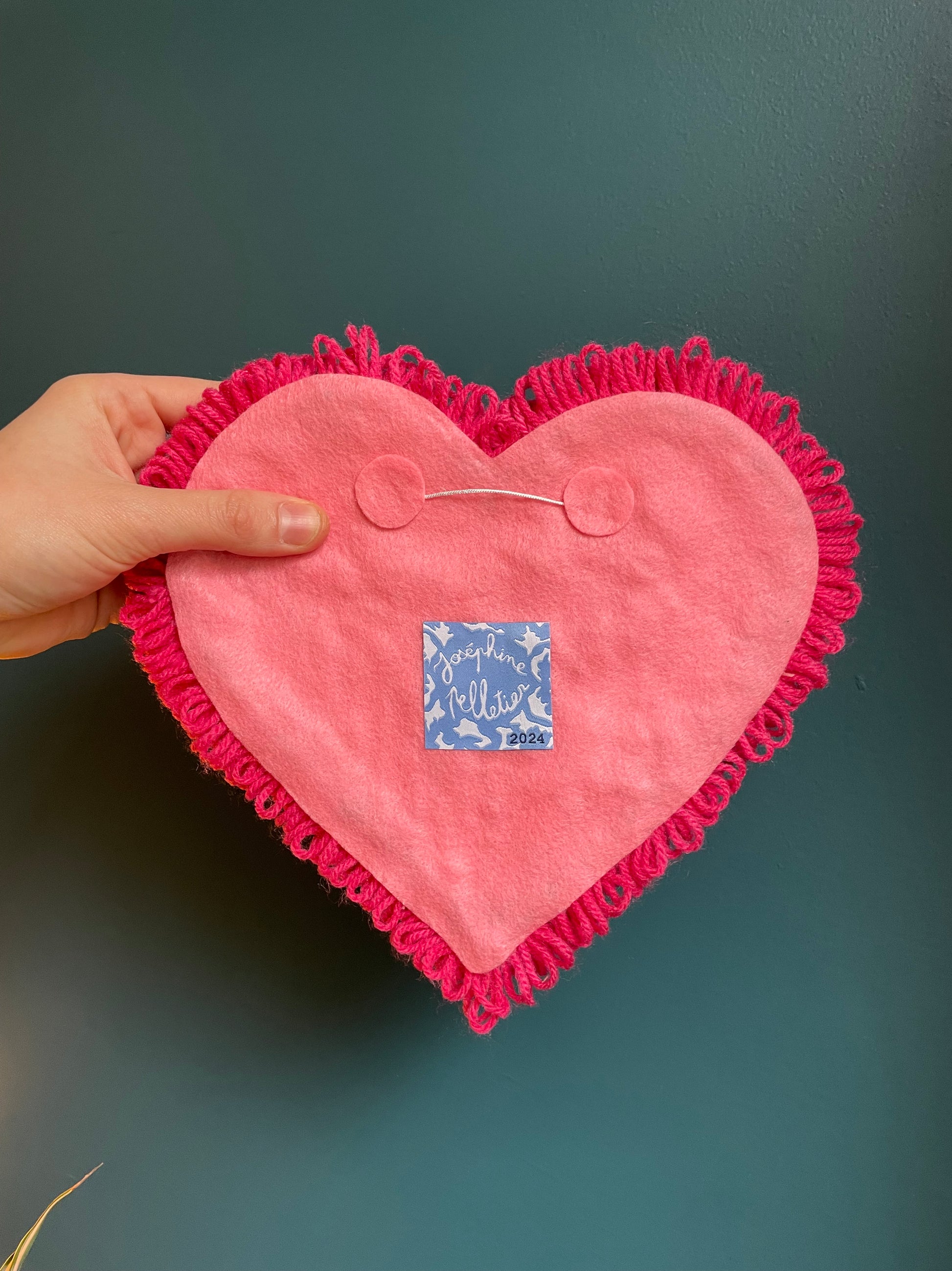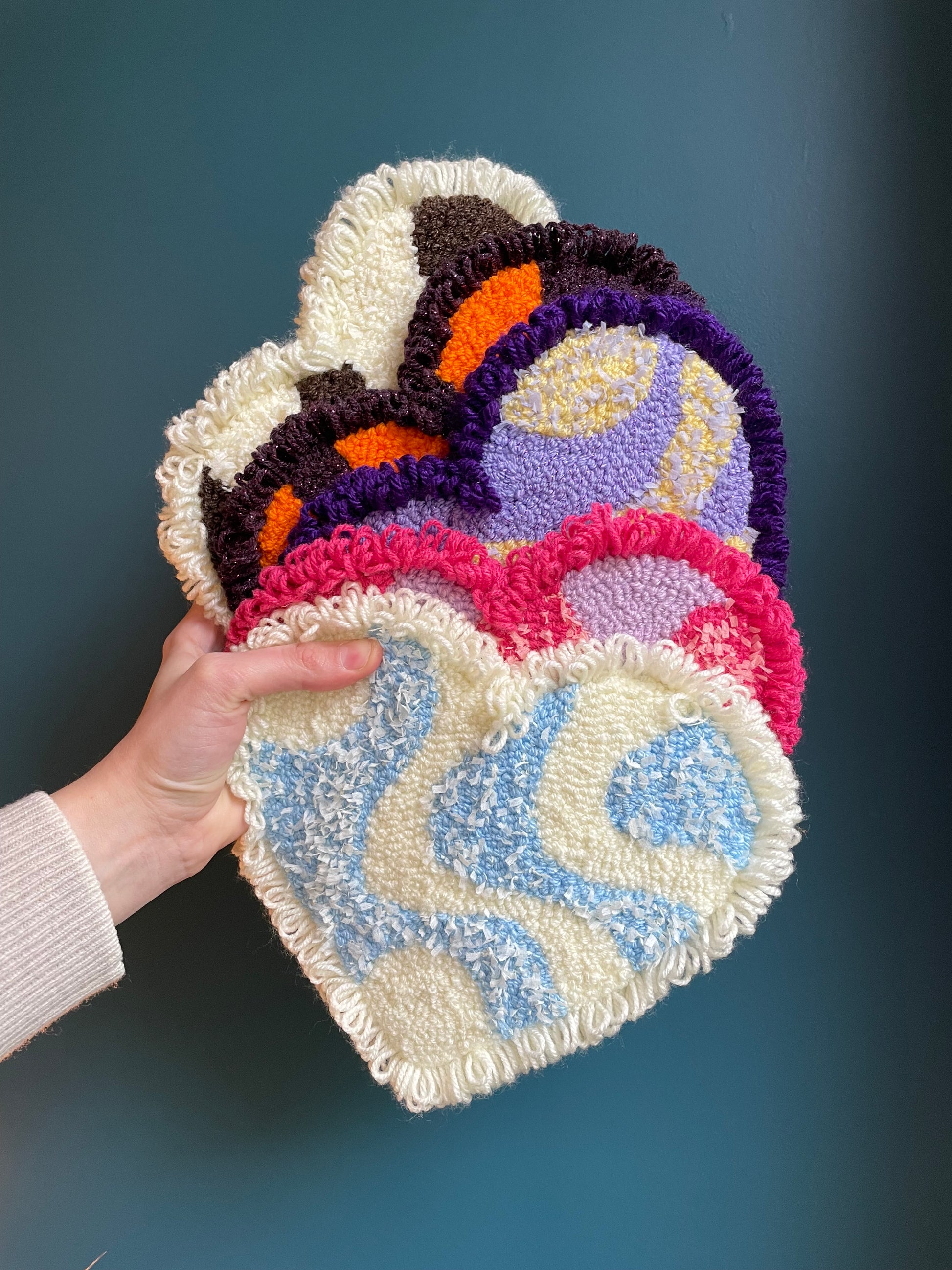 Décoration murale en tufting et punch needle, cordon de suspension dans le dos.