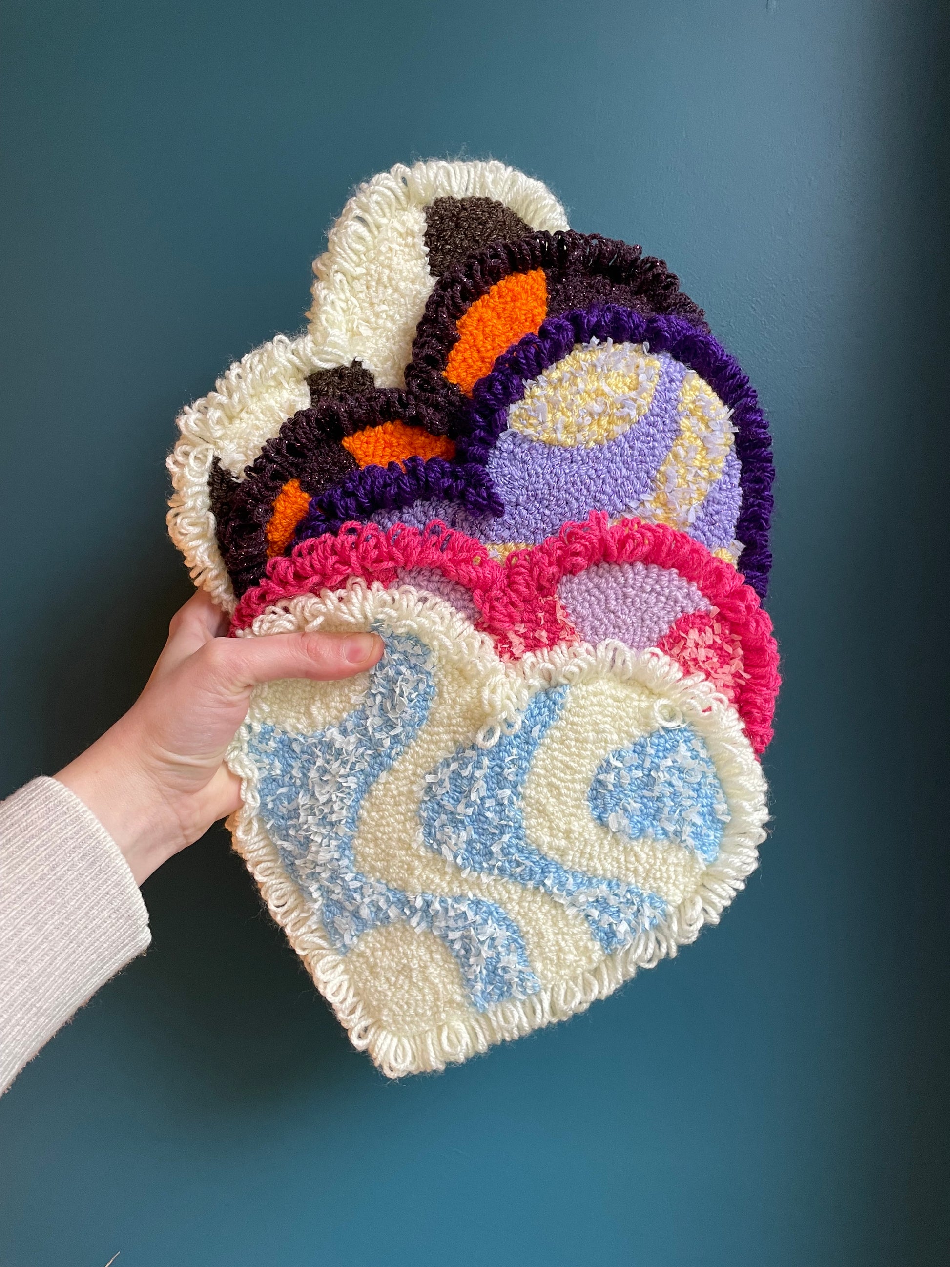 Décoration murale en tufting et punch needle, cordon de suspension dans le dos.