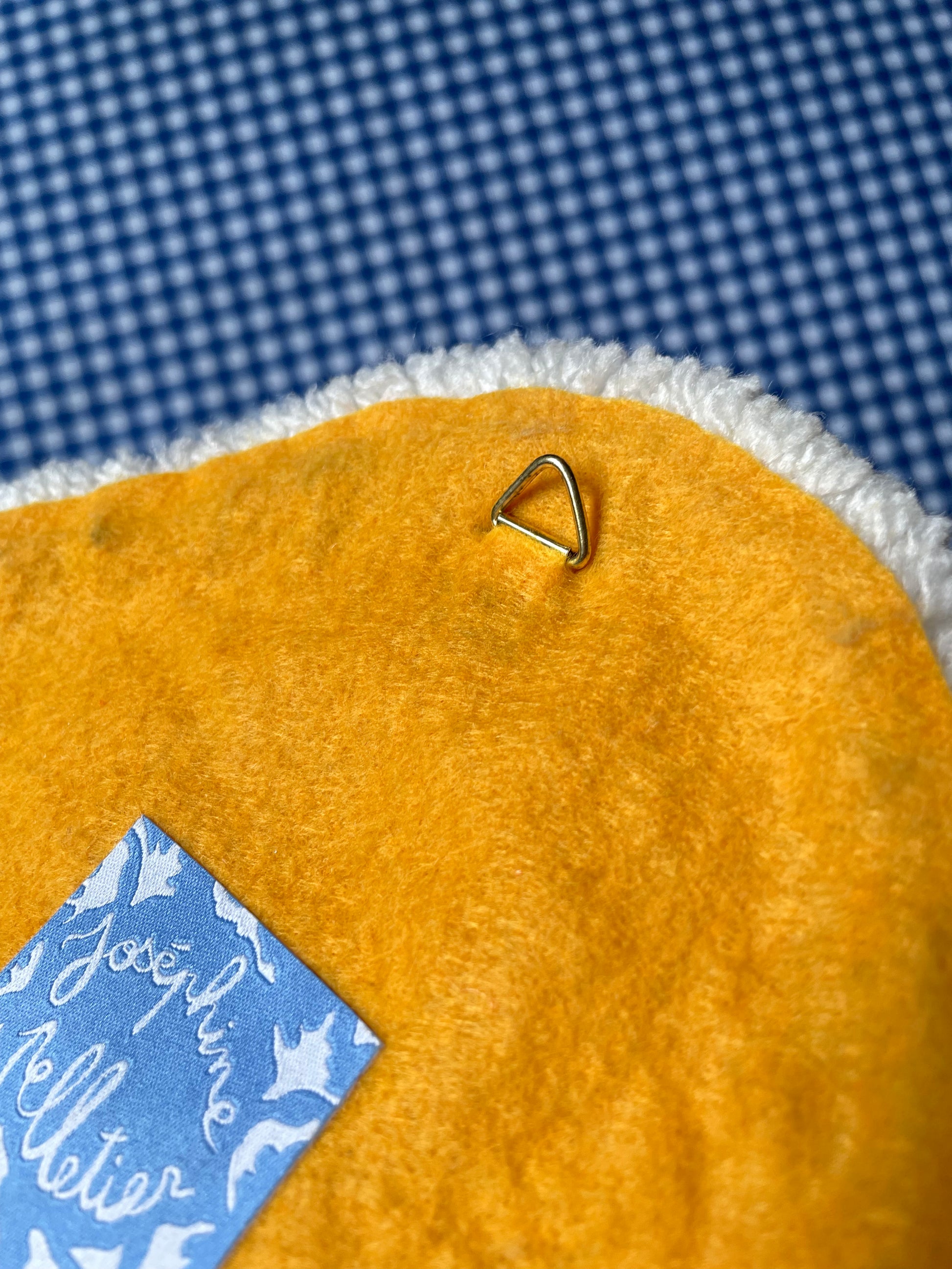 Décoration murale en tufting, crochet de suspension dans le dos.