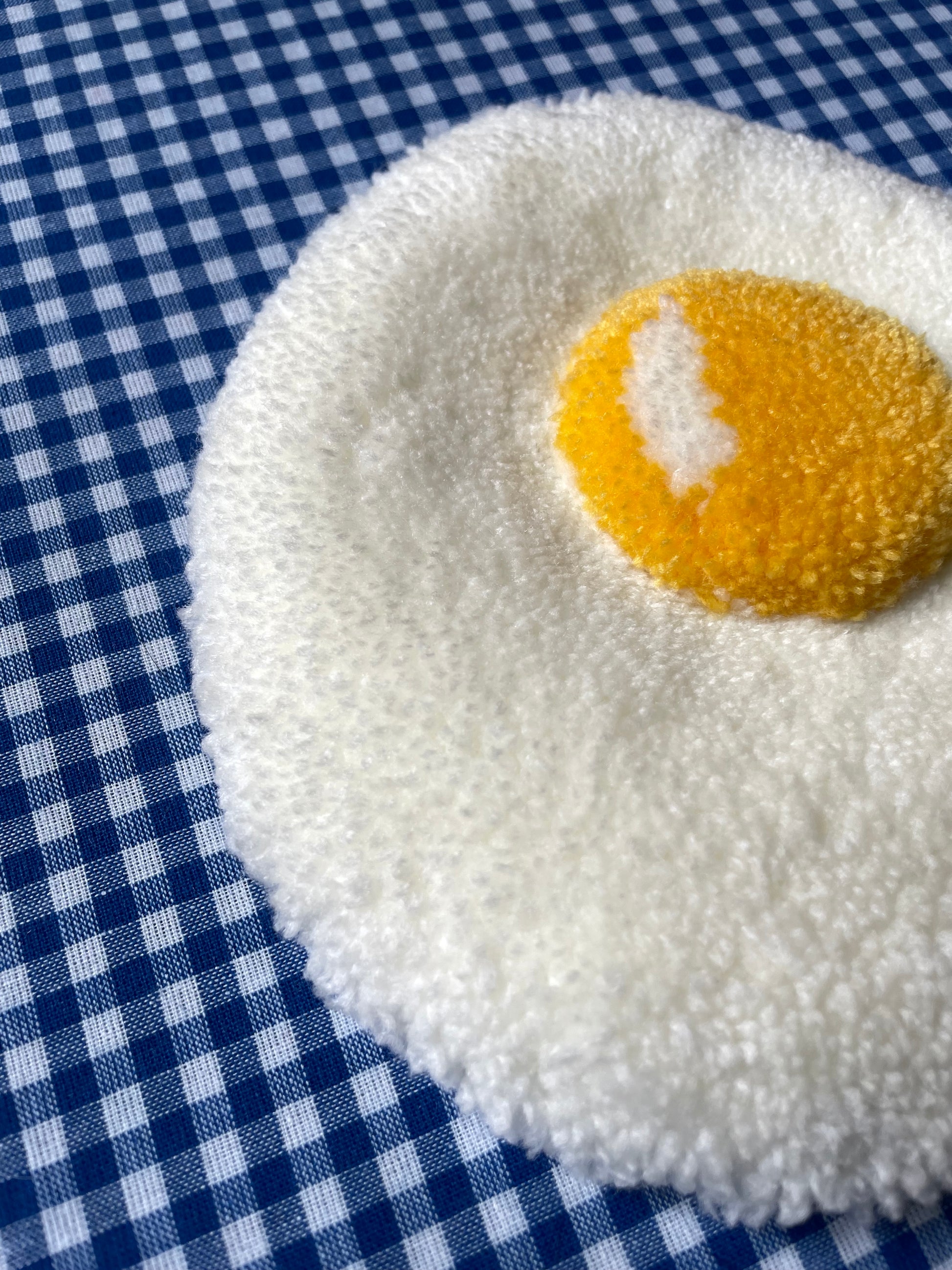 Petit oeuf au plat tufté (à suspendre ou poser)