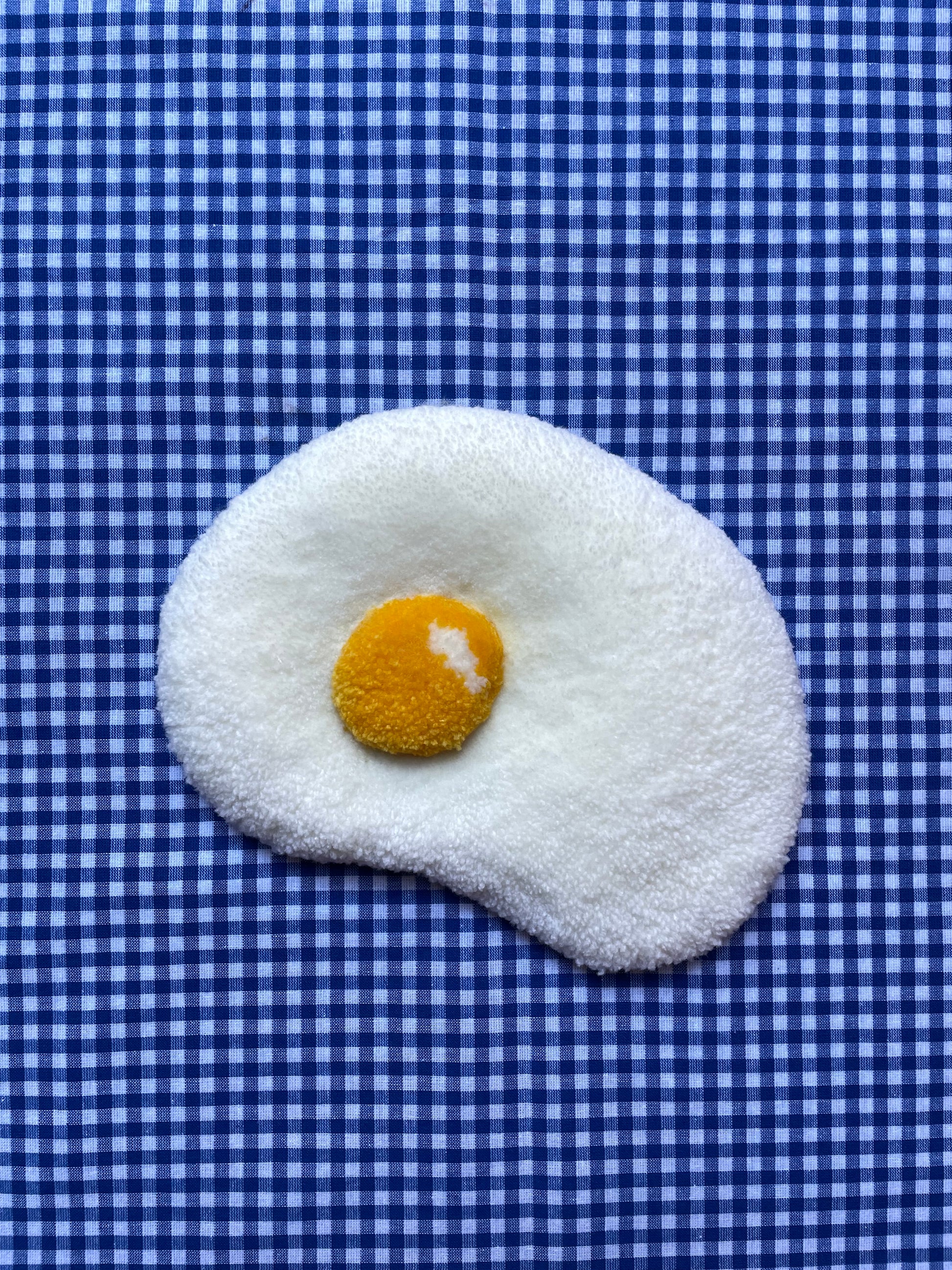 Petit oeuf au plat tufté (à suspendre ou poser)