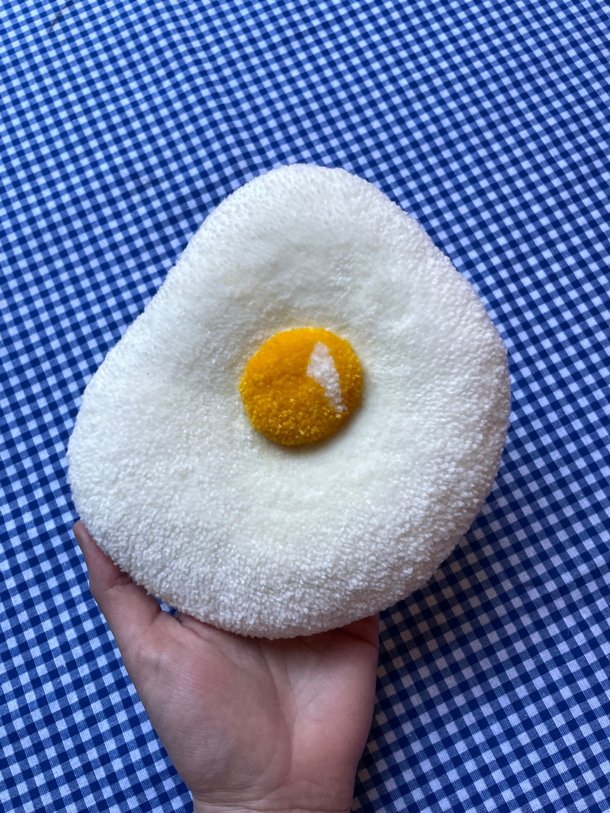 Petit oeuf au plat tufté (à suspendre ou poser)