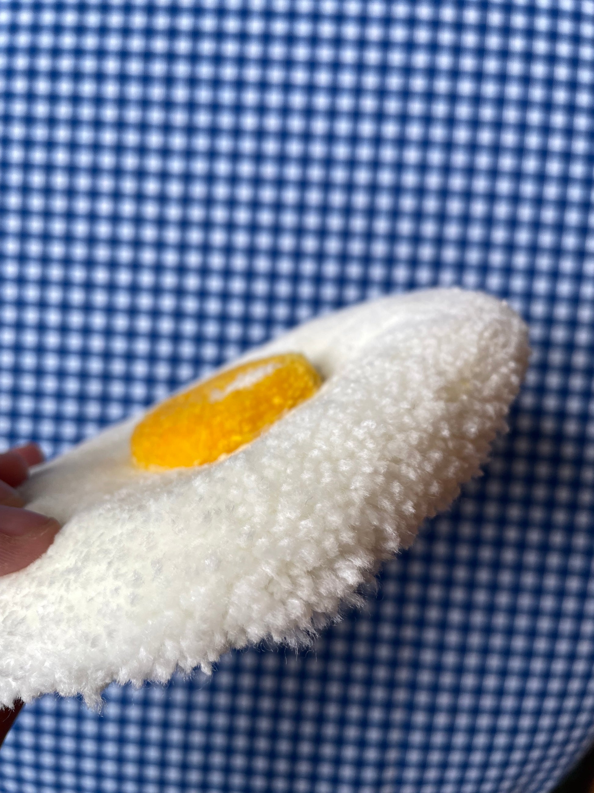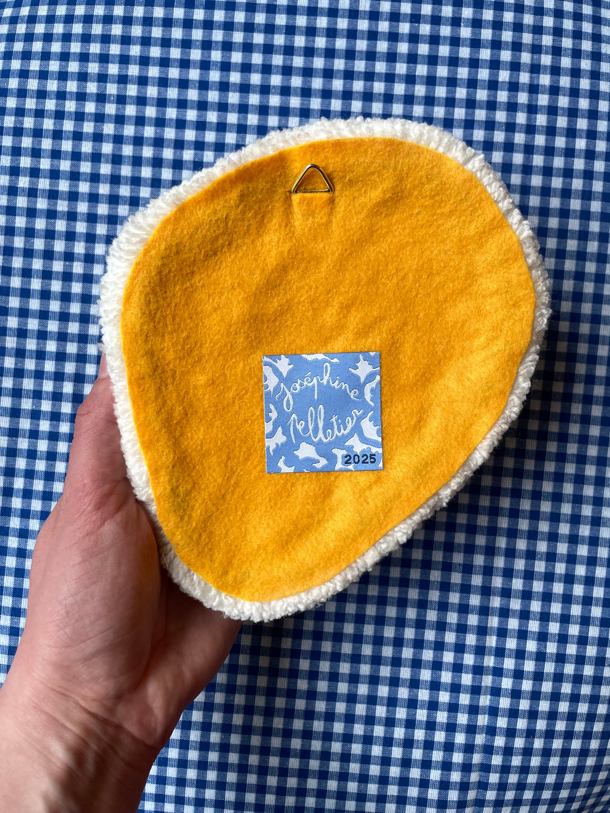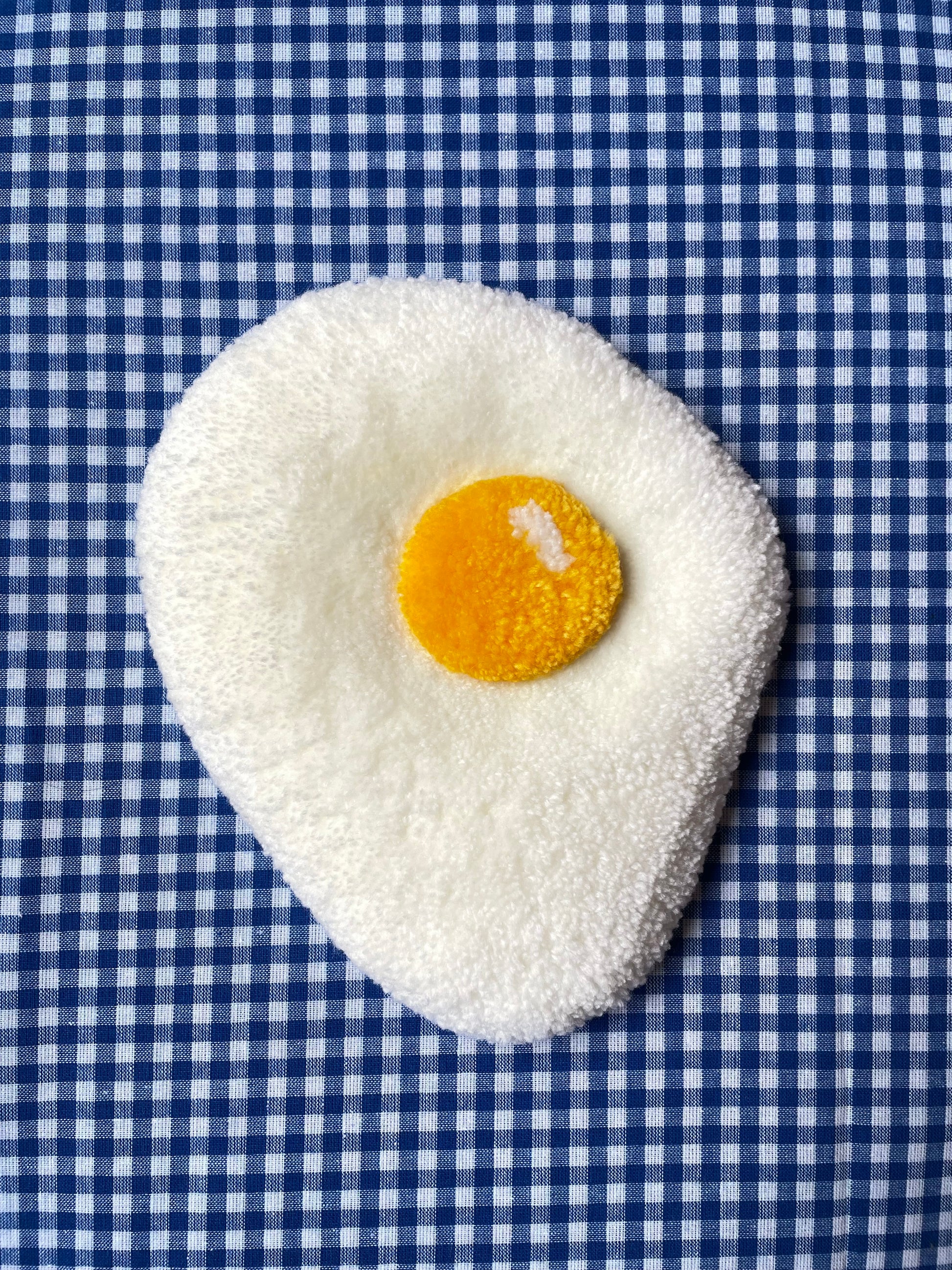 Petit oeuf au plat tufté (à suspendre ou poser)