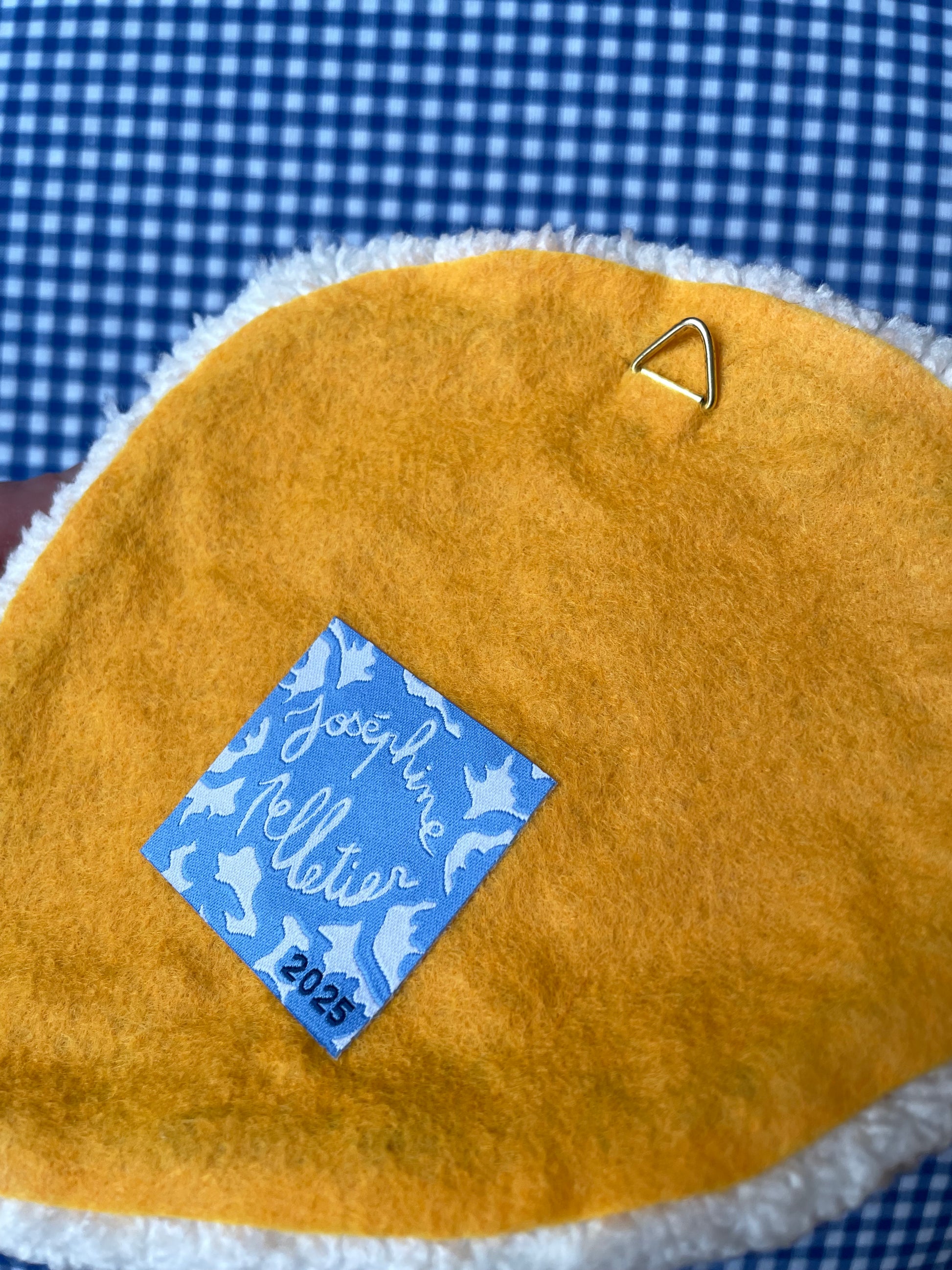 Décoration murale en tufting, crochet de suspension dans le dos.